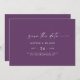 Det här moderna vågrät för vattenfärgskoordinering av lila sparar datumkortet är perfekt för en snyggt contemporary bröllop. Den enkla plommons lila och vita design har en unik industriell stil med modern boho stil. Anpassade i alla färg. Behålla designen minimal och elegant, som den är, eller anpassa den genom att lägga till egna bilder och teckningar.