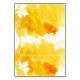 Den moderna abstraktens vattenfärgade stänk gult bröllop-vikta sittplatskort med en handmålad vattenfärg stänk med struktur i toner av gult och kanel orange, maple löv i vitt med korallvener och text i vitt. Den här avslappnaden för elegant och snyggt i bröllop är en perfekt för hela anpassadet för vår, sommar eller fall/höst bröllop. Observera att detta bara är en vattenfärgsbild och inte en riktig struktur. Fäst längs den prickade linjen för att ha ett sittkort för tält stil.