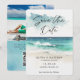 Modern vattenfärgsskrift Oceanstrand QR-kod Spara datum-anmälan - En vacker vattenfärgsstrandscen med modern skrifttypografi. Med en bild av det lyckliga paret på baksidan QR-koden finns också på baksidan av inbjudan.Spara datum är en del av en samling.