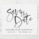 Modern vattenfärgsskripttypografi bröllop spara datum-meddelandekort. Modern svartvit och svart tonfärgad trenddesign.