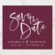 Modern vattenfärgsskripttypografi bröllop spara datum-meddelandekort. Modern på trender klassisk burgundisk design.