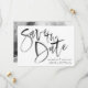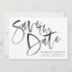 Modern vattenfärgsskripttypografi bröllop spara datum-meddelandekort. Modern svartvit enfärgad design.