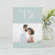 Modern vattenfärgsskript, typografi av fotokortet bröllop spara datum meddelande.