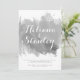 Modern abstrakt vattenfärgssplash grå vinterbröllopsinbjudan som visar en målad vattenfärgssplash med textur i grå toner, träd i vitt med snö, snöflingor och text i vitt och grått. Observera att detta bara är en bild av vattenfärg och inte riktig textur. För bästa resultat välj filt eller annat papper.