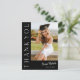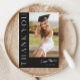Detta moderna eleganta snygga foto-examens tacksamhetskort har ett vertikalt foto och rubrik med anpassningsbart skriptnamn och text på framsidan. Baksidan har ett personligt meddelande och signatur som båda kan tas bort om du föredrar att skriva dina tack-kort för hand. Klicka på redigeringsknappen för att anpassa denna design.