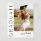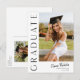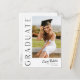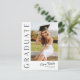 Denna moderna eleganta stilrena fotoförfrågan om examen har ett vertikalt foto och rubrik med anpassningsbart skriptnamn och text på framsidan. Baksidan har en inbjudan med festdetaljer. Ett bra sätt att visa upp din examen. Klicka på redigeringsknappen för att anpassa denna design.