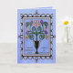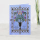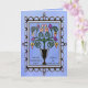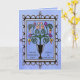 En högtonad periwinkle-blå bakgrund sätter av denna originella, moderna tolkning av en klassisk Victorian stil-buquet med flera färg-blommigtar i ett vas omgivet av en ram med torka och järn. Inuti hälsning är "I Kärlek You, Mamma!" anpassade.