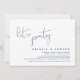 Detta är vigelöpningsfestens inbjudningskort, med minimalism / minimalistisk marinblå skriptdesign (Låt oss festa).