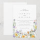 modernt Modern Vildblomma Bröllop med fantastiska rustika boho-chica handmålade akvarellblommor i färgerna mörkblå, ljusröd, rosafärgad, gyllengul och salvia gröna blad som är perfekta för moderna vår- och sommarträdgårdsbröllop.