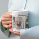 Fråga din syster, bästa vän eller systerson till att vara din brudtärna på din bröllopsfest med denna snygga moderna foto collage-mugg. Med 3 fyrkantiga bilder på dig och personen du frågar, med typsnitt som kan ändras till valfri färg. All text kan enkelt anpassas med hjälp av den medföljande mallen.