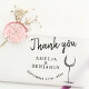 Modern Vin-glastypografi - tack Bröllop gummi frimärke. Skapa ditt eget bröllop-tack till frimärke. Utformningen har Tack för elegant, skript, brud och groom namn, bröllop, datum och form för ett vin-glas. Anpassa med dina data.