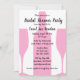 Modern inbjudning till möhippa av vinodlingar. Elegant vin temat brodusch inbjudan. Personligt bröllp party inbjudan med silhuetter av vin flaskor och glas. Anpassa urklippsformen. Anpassningsbarnas bakgrund färg. Snygg snyggt-penseltext. Mall för roligt för bachelorette-parti, förlovning, möhippa, sammankomst, flickors helg, vin-smakning, flykting med mera. Rosa eller anpassningsbar färg.