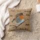 Modern Vintage Robin Bird, faux burlap struktur, skriptkudde.