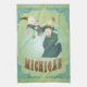 Älskvärd modern vintageMichigankarta i vis mangrönt som förskönas med älskvärda trädgren- och lyckligfåglar. Enkelt rogivande och förtjusande!