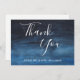 Modern och maskulin bröllop-platta tackkort med en enkel design med "Tack" i ett vitt handskript och ditt efternamn i ett sans serif-teckensnitt, över en mörk tvättar marin blå vattenfärg. Baksidan har ditt personliga meddelande. Den blå färg gör den här underbaren för ett moody vinterbröllop.