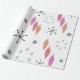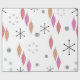 En atomtidsomformning med jultema. Har silver snöflingor och röda, orange och lila Julgran-prydnadsämnen.