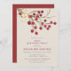 Vacker chic rustik födelseinvitation för en vinterfödelsedagsfest. Den har röda eldbär på en kal gren dekorerad med en guldbjällra och snöre.