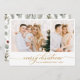 Modern botanisk Elegant 2 Photo Collage-julkort. Detta festiva, minimalistiska multifotochristmas-kort har söt 2-rasterfotokollage, en "God jul" hälsning-text som är skriven i en handskriven kalligrafi eller typografi-dekortecken i svan i guld och vitt. På baksidan av vintern vintern färgas botaniskt grönt löv, bär, eukalyptus löv, gräs nål och grenar. Den här festliga Anpassningsbarna Fotojulkort är ett underbart sätt att påminna de kära om att du tänker på dem den här vinterJulhelgen.