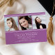 Meddela din högskola eller högskola student i stil med ett trefoto-studenten kort med uppgifter om rand och en modern sans-inbjudan. Fuchsia orchid/ultraviolett lila och vit färg. Anpassa för att lägga till tre foton och information om annonsering och partiinbjudan till studenten.