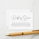 Behöver du mer information om din inbjudan? Det här anpassadets adapterkort har två anpassningsbar fält för att dela viktig information med dina gäster. Utformningen har en mjuk, svart, modern, minimalistisk text på en skarp vit bakgrund. Anpassa texten och anpassa för att matcha färgen eller temat för evenemanget. Den här Visningen Kortet för duschmöbler för duschgäster för möhippor eller barn uppmanas att visa sina presenter utan omslag vid evenemanget. Para med matchande presentmärkre från vår samling.
