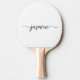 Flickig svart-vit monogram namnteckning skript Anpassad personlig ping pong paddel. Dessa mönster har ditt förnamn i en vacker handskriven svansfont namnteckning typografi (eller kalligrafi) svart skript på vit bakgrund. Dessa är lätta att anpassa. Fin stilren feminin husvärmningspresent, bröllop, även för födelsedag, söt 16-års födelsedagsfest, mors dag, brudshow, baby shower, för examensfest och det är för flickan som älskar unika stilrena saker.