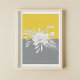 Modern och söt väggkonst med kombinationen Pantone 2021 färg i Ultimate Grått och Ljusering som bakgrund till en helt vit blommigt i hand plockade i mitten.