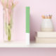 Den här förfinade, geometriska designen har en modern vit kant-kilform i grund mot bakgrund av en grönt.