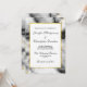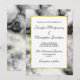 En bröllopsinbjudan med ett elegant och modernt marmorerat mönster. Vit, svart och rökgrå marmor med tunna band av falskt guld som virvlar genom hela mönstret.