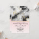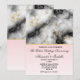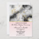 Årsdagsinbjudan med ett elegant och modernt marmorerat mönster. Vit, svart och rökgrå marmor med tunna band av falska guldvirvlar genom hela mönstret. En ljus rosa gradientbakgrund under det marmorerade mönstret.