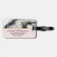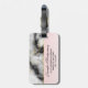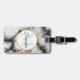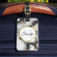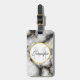 Bagagetaggar med en klassad, modern marmorerad mönster. Vitt, svart och rökfritt grått marmor med tunt rosett band faux-guld-snurrar över hela mönster. En vit cirkel med faux-guld ram överst med ditt monogram initialt och namn inuti.