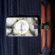 Modern vit Grått Marble med Guld Ribbon Monogram Bagagebricka