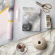 Papper med en elegant och modern marmorerad mönster. Vitt, svart och rökfritt grått marmor med tunt rosett band faux-guld-snurrar över hela mönster. En ljus rosa övertoningsbakgrund under det marmorerade mönster med en smal remsa av faux-guld-foil.