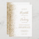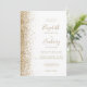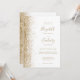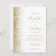 Den vänstra kanten på denna eleganta moderna bröllopsinbjudan har en falsk glitterdesign i guld. Den anpassningsbara texten kombinerar guldfärgad handskrift, kopparstick och kursiva teckensnitt på vit bakgrund. Baksidan har en matchande vit och guld glitterdesign.