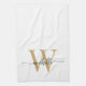 Modern vit guldskrift med anpassad monogramnamn kökshandduk