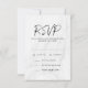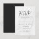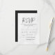 Stilrena och moderna bröllops-svarenkort med svart modernt skrivstil, vit marmorerad bakgrund och platshållare för dina anpassade menyalternativ. Baksidan av de eleganta bröllopssvar-korten kan ändras till en färg du väljer med hjälp av anpassningsverktyget.