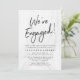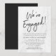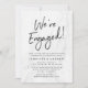 Snyggt, moderna inbjudningar till bröllop-förlovningsfesten som innehåller ett "Vi är engagerade" i ett skript med svart trendig, vit marmorbakgrund och platshållare för information om anpassningsbarnas förlovningsfest. Baksidan av förlovningsfesten inbjudan kan ändras till en färg som du väljer med hjälp av Anpassad verktyg.