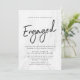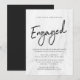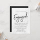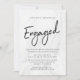 Snyggt, moderna inbjudningar till förlovningsfesten bröllop med ett skript för svart trendig, vit marmorbakgrund och platshållare för information om anpassningsbarnas förlovningsfest. Baksidan av förlovningsfesten inbjudan kan ändras till en färg som du väljer med hjälp av Anpassad verktyg.