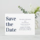 Modern vit och marinblå stor typsnitt spara datumet