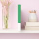 Denna förfinade, geometriska utformning har en modern vit kilform grund kant mot bakgrund av havets grönt.