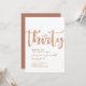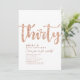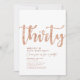 Enkel vit & roséguld "Trettio" personlig 30-års födelsedagsinbjudan med klassisk och modern typografi. Anpassa med namn, ålder och festdetaljer.