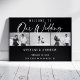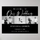 Modern vit skrift svart och vit foto elegant bröllopsaffisch med anpassningsbar förlovningsfest tre svart och vita foton Bröllopsskylt med vit skrift på svart bakgrund. Alla lager lämnades olåsta så att du kan klicka för att ytterligare anpassa och flytta text, foto eller till och med ändra storlek eller typsnitt.