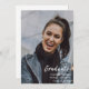 Modern och enkel fotoannonsering designad med trendigets vita, handskrivna skripttypografi. Anpassa information om skola eller högskola och klassår och anpassa meddelandet i bakgrunden från stolta föräldrar. Grattisar student och föräldrar också! Bra gjort! Platshållare Photo Kredit: Vinicius Wiesehofer från Unsplash! Tack