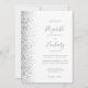 Den här elegantens lämnat kant har en modern bröllopsinbjudan i silver i glitter. Anpassadet kombinerar grått-handskrift, tryckplåt och kursivt typsnitt på vit bakgrund. Den omvända sidan har en matchande vit- och silver-glitter-design.