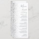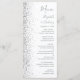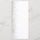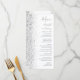 Den moderna bröllop-menyn på den lämnat kant i eleganten har en silver faux glitter-design. Anpassadet kombinerar grått-handskrift, tryckplåt och kursivt typsnitt på vit bakgrund. Den omvända sidan har en matchande vit- och silver-glitter-design.