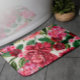 Den här eleganten och den färgstarka, skarpa och feta vattenfärgsbadmattan har blommor i rosa, rött och persikofärgat färg med botaniskt löv och benvit bakgrund.En blommigt för perfekt av badrummets .