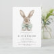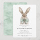 Modern Watercolor Easter Dinner Invitation features an adorable watercolor bunny all decked out in his pastel green polka dot bowtie.