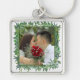 Modern Watercolor Greenery Bröllop Fyrkantig Silverfärgad Nyckelring