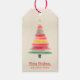 Julgran och hälsning och namn i chic med röda bokstäver på blek elfenben rand, dessa märkre eller partier är märkre för vilken snyggt som helst. MATCHING-objekt i vår samling.