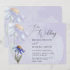 Temapartyets moderna bröllopsinbjudningar har lila-blå Gerbera-daisy och modern manustypografi parad med traditionell serif-bokstavering. Designen är inställd på att matcha lila-blått stänk i blek över en pastelllavendelbakgrund. #Bröllop #SpringWedding #ModernWedding