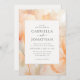 En modern romantisk bröllopsinbjudan har en bakgrund med vattenfärgade blommigtar i persikofärgade nyanser. Anpassa alla viktiga detaljer, t.ex. namn, bröllop, datum, tid och plats.